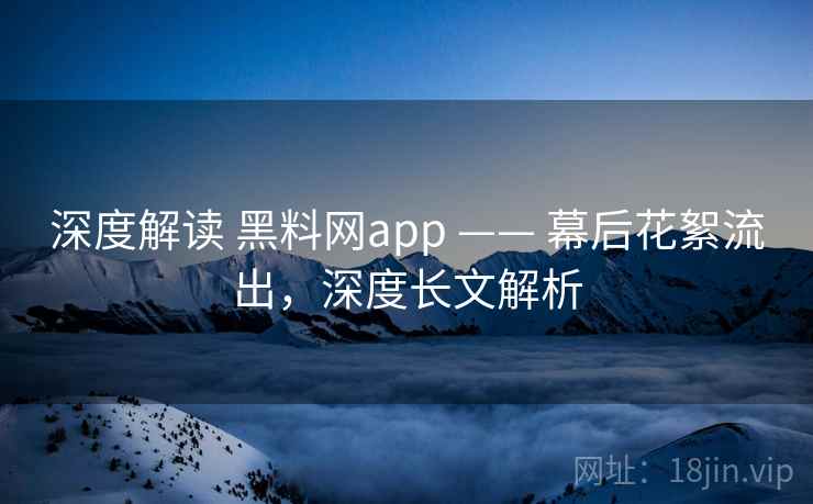 深度解读 黑料网app —— 幕后花絮流出,深度长文解析
